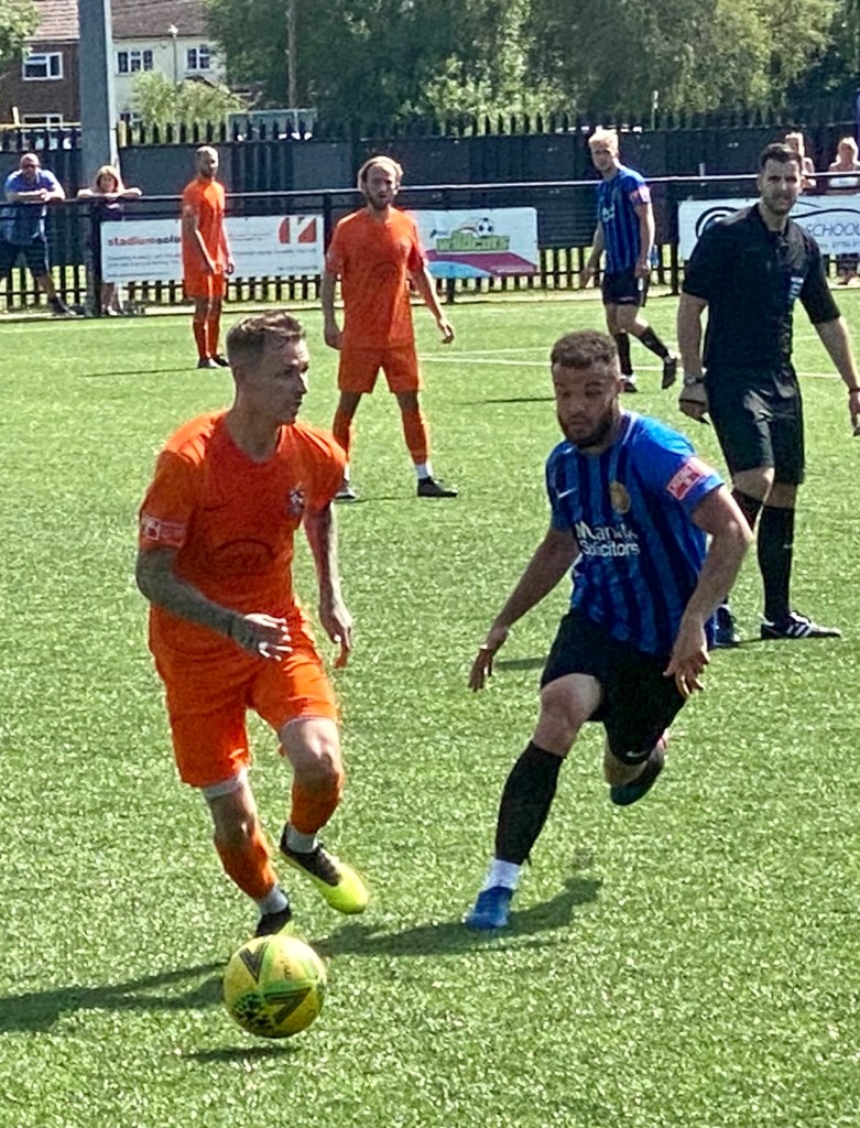Brentwood continued to press and after a fine run by their number ten, the resulting save presented a follow up chance, to his fellow forward, number 9, who slotted it away for an equaliser at 1-1 after 16 minutes.