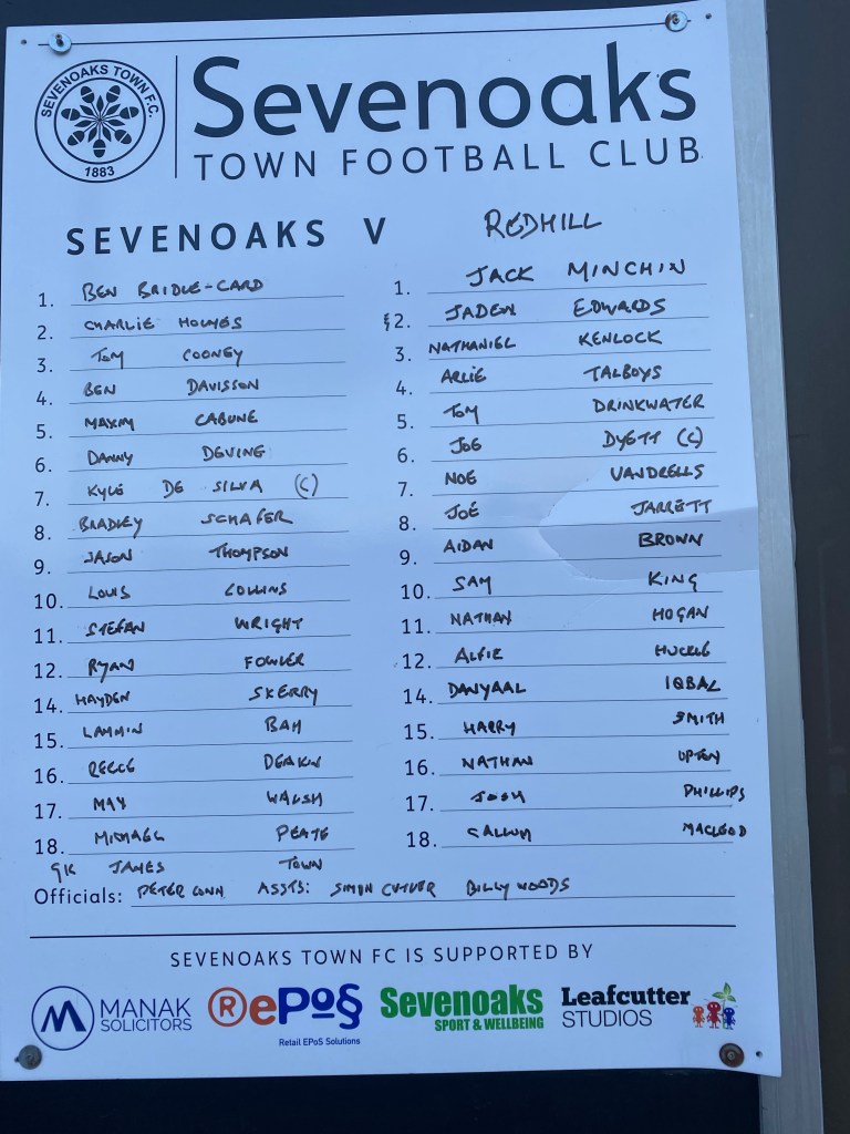Redhill had more chances as they began to find their shape. In the background an impressive electrical storm took hold and a wind blew across the ground. This seems to re-invigorate Sevenoaks and on 70 minutes they had a chance cleared off the line by the Redhill defence.