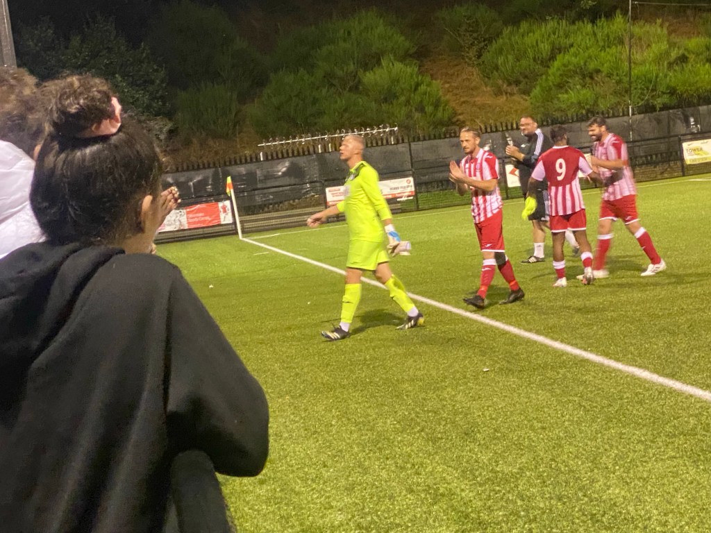 Seven minutes later, in the 77th minute, as the rain fell and the players tired, Redhill saw their opportunity and number ten, Sam King, took his chance and pulled it back to 3-2, to create a tense end to the tie. Then, with 5 minutes remaining, King broke free and finished for his second goal of the night, to pull the score back to an unlikely 3-3.