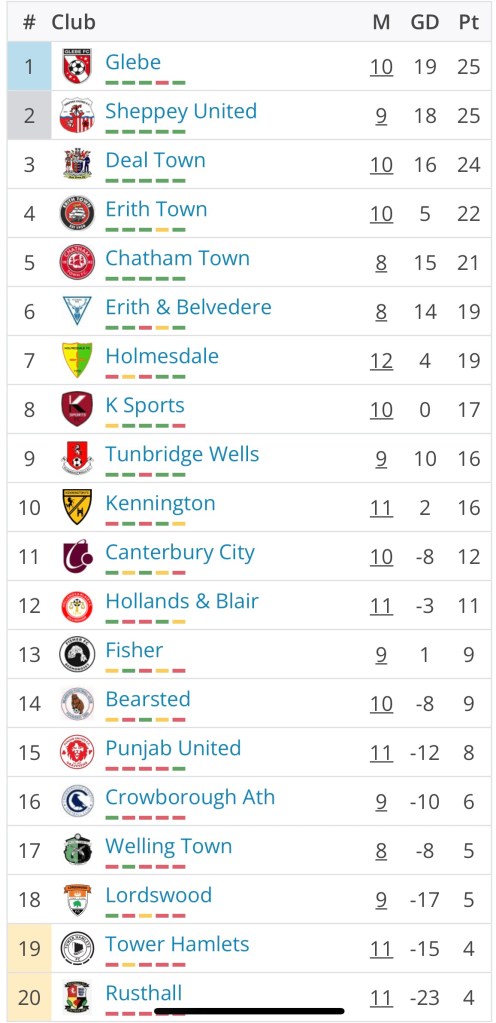 Chatham looked like the team of last season today with a fine win which pushes them close to their SCEFL title rivals. Tunbridge Wells will be disappointed, but didn’t look like they were in the game once Chatham opened the scoring.