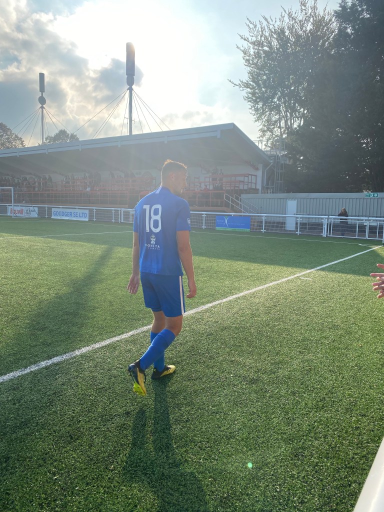 I came with an old friend to see my first game of the 2021-22 season at the Bauvill stadium, home of Chatham Town. The Bauvill is a modern stadium with good covered seating and standing areas, bars and refreshment provision.