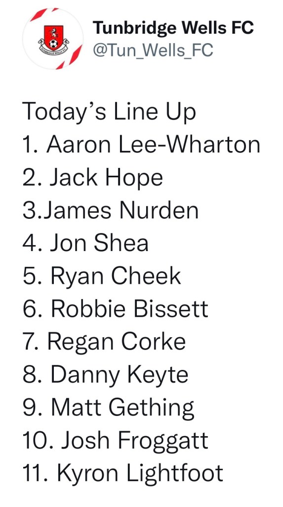 Tunbridge Wells side, courtesy of Tunbridge Wells FC Twitter account.