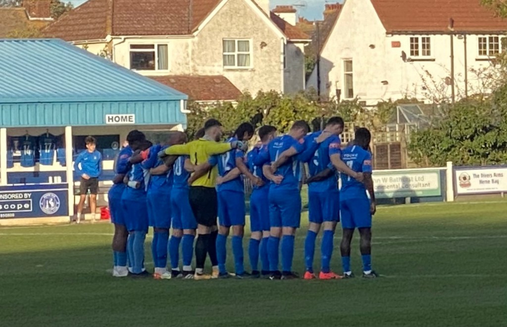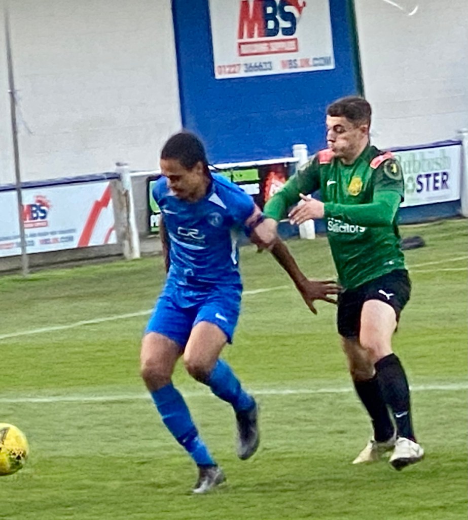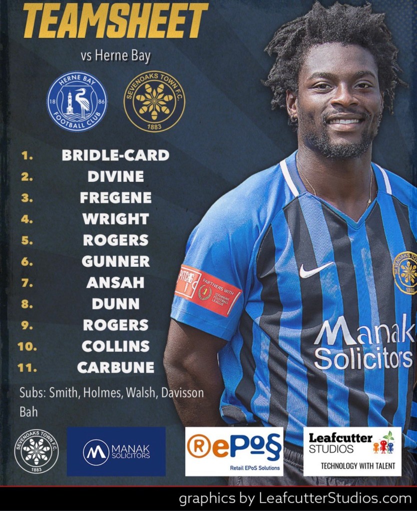 Herne Bay’s team showed the goal machine, Zak Ansah, with eight league goals in eight games, started at number 9. Manager Ben Smith was looking for his side to bounce back from Tuesday evening’s 1-3 home defeat to Ramsgate.