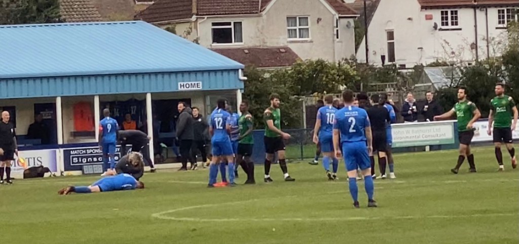 There was then on 40 minutes, an injury that led to a Sevenoaks’s defender being stretchered off, after seeming to fall badly in a simple challenge.