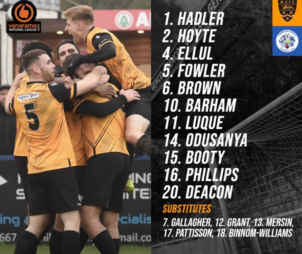 The team were announced at 2.00 pm and Maidstone’s team showed that Phillips and Brown had come into the team to replace Corne and McGlashan who had picked up injuries in training.