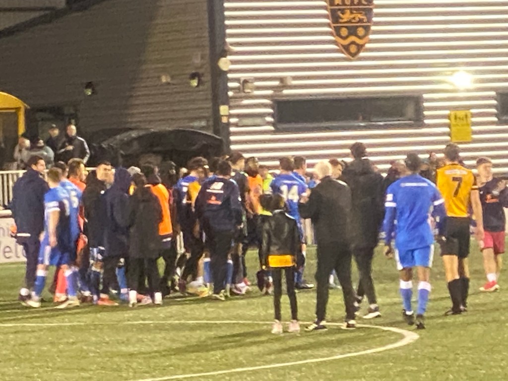 With just four minutes left, Tonbridge Angel’s Doug Loft was dismissed, with a straight red for a bad tackle.