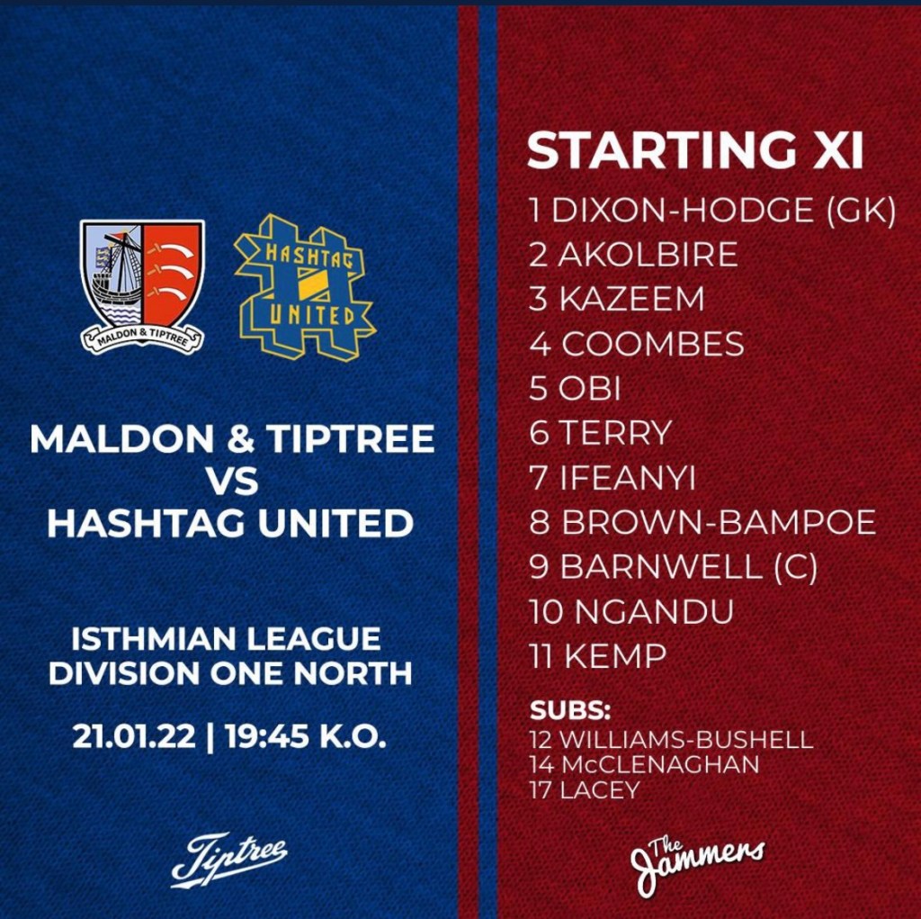 The Jammers, as Maldon & Tiptree are known, are without manager Wayne Brown, as he has temporarily departed to take interim control at Colchester United. Three new signings were available for the match tonight, with Joshua Green and Dequane Wilson-Braithwaite joining from St Neots Town and Rob Lacey joining from East Thurrock United. In the end only Lacey made the match day squad.