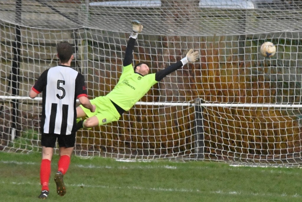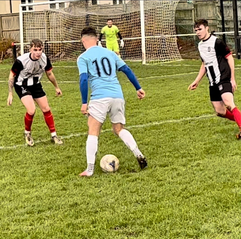 On 55 minutes Dan Carter slid in, to scoop the ball past Adam Clatworthy, the Malmesbury Victoria keeper, claiming his hat trick and making it 4-0 to Studley.