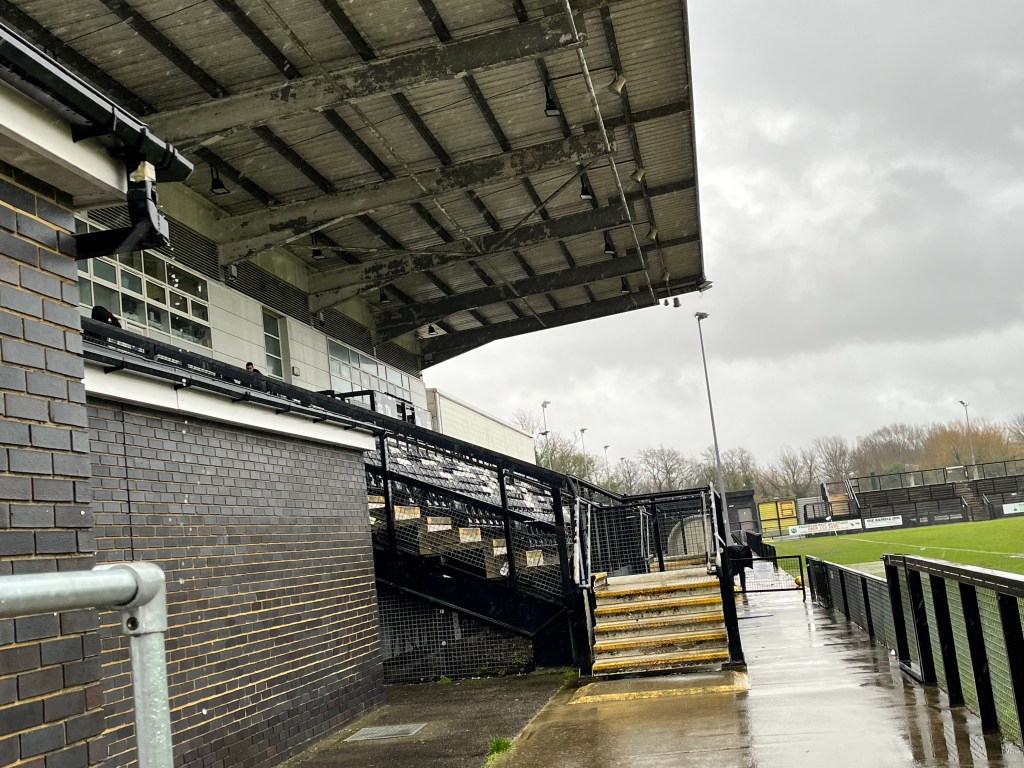 It was a wet and windy day following 24 hours after Storm Eunice had left a trail across London and South East England. I arrived in heavy rain and was told the turnstiles don’t open until 2.30, so I took a seat in the huge Sports bar and watched West Ham v Newcastle on the large screens. Once inside the stadium I was impressed by the space offered by the two covered stands for standing behind the goals, as well as open terracing. The main stand gave a good view and provided much needed shelter from the heavy rain. The ground also benefited from a Caribbean food stall, which looked and smelled delicious, however I managed to resist!!