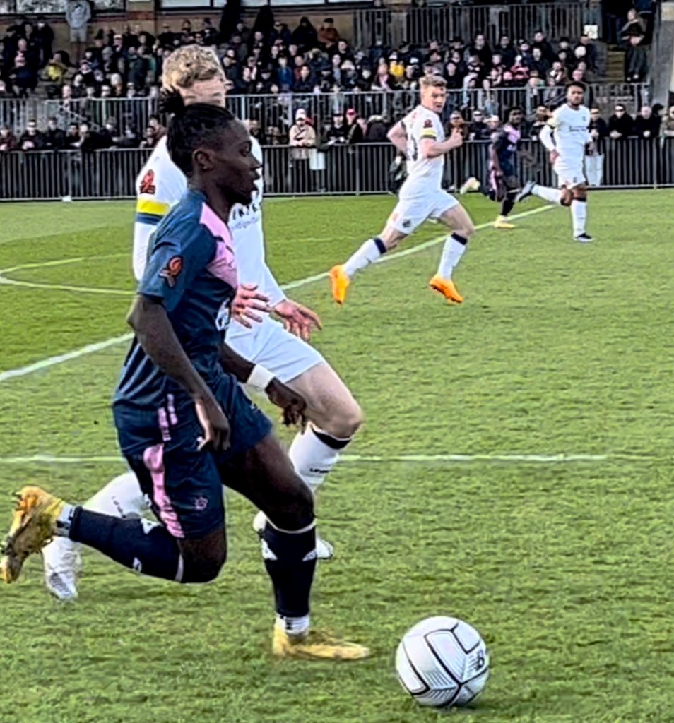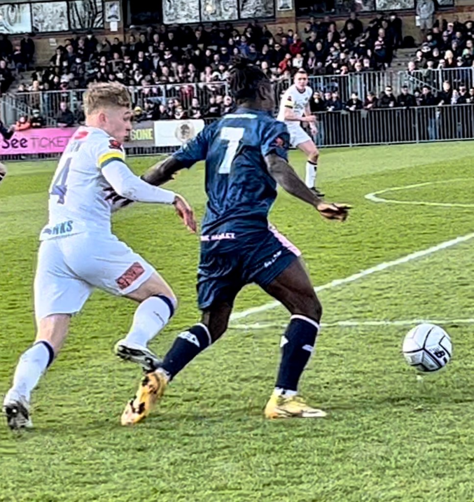 Dulwich Hamlet’s last real throw of the dice, was bringing on top scorer, Danny Mills, in the 75th minute as a substitute. Sadly he lacked the quality passes needed to create goal scoring opportunities.