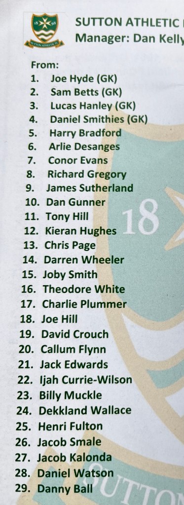Sutton Athletic, managed by Dan Kelly, who had finished second in the very competitive SCEFL Division 1 this season won comfortably in their semi-final, at home to Tooting Bec. Arlie Desanges, their talismanic goal machine, with 41 goals from 41 games this season, had scored along with Ijah Currie-Wilson and Jacob Kolanda, as the home side secured a comfortable 3-0 win to see them into today’s final.