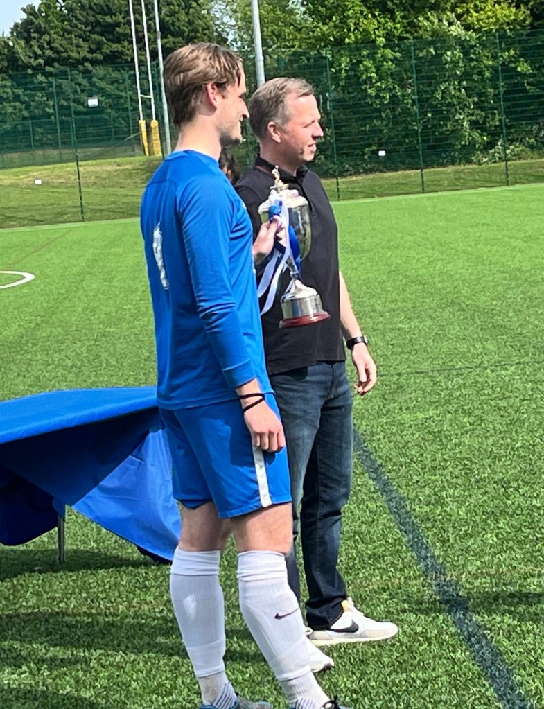 At full time the FC Revo players came together with their manager and talked about the history of the club and the hard work put in by so many, to lead towards the success this season. They then popped champagne corks and celebrated by lifting the Sevenoaks and District Premier League Title.
