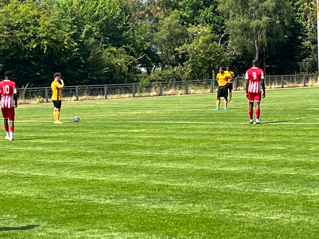 The opponents today were local rivals Merstham FC of the Isthmian league. New boss Peter Adeniyi, moved across to the Merstham hot seat, from local rivals Carshalton Athletic and will be looking to make a real mark on the Isthmian (South-Central) league.