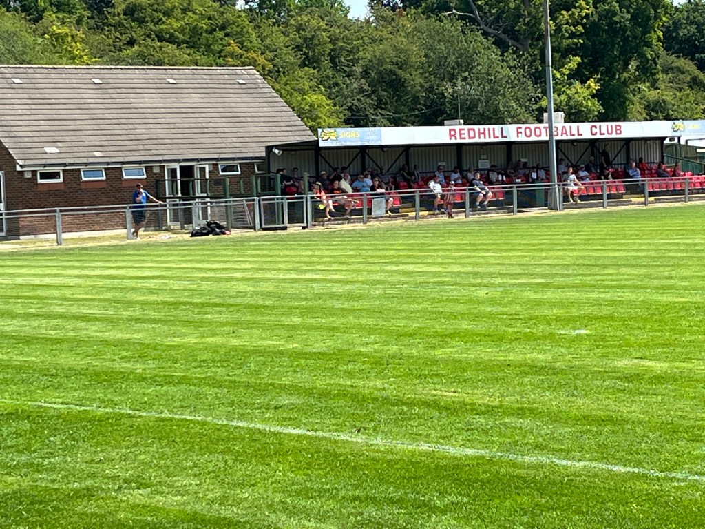 Redhill FC, of the Combined Counties Premier League, are known as the Lobsters. That was a suitable name for the home team, on a day when temperatures reached 29 degrees. My failure to sunscreen in the last Saturday game had left me looking like a lobster so today I took no chances and was ready and protected ahead of this 1.00 pm kick off.
