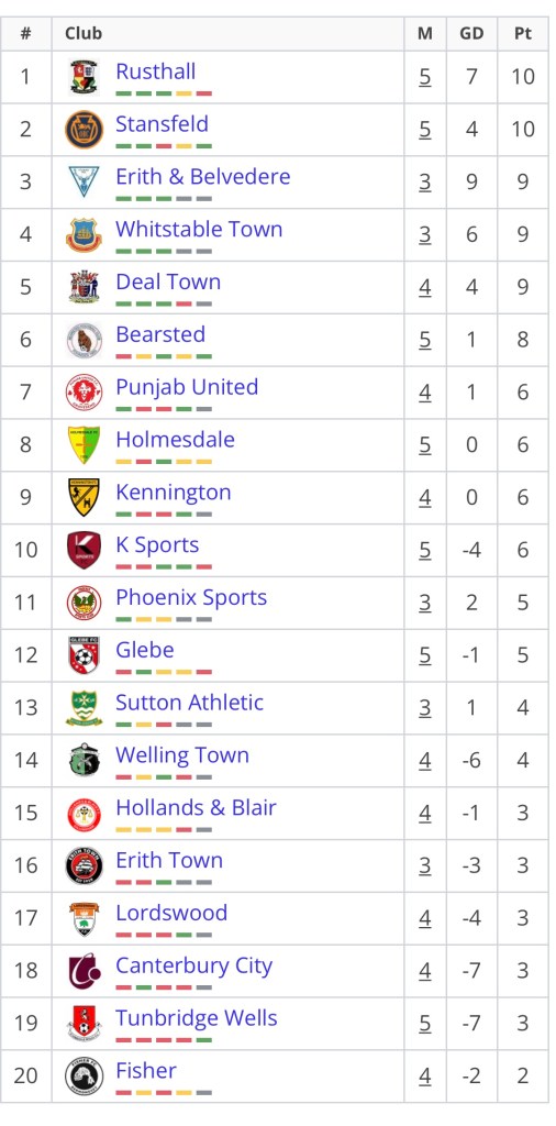 Manager, Adam Woodward, saw his side beaten 3-1 at home in two consecutive fixtures, by high flying Rusthall and Phoenix Sports, who were relegated from the higher ranked Isthmian League South East Division, last season. This was balanced by a fine 1-0 away victory, at Fisher FC, in Rotherhithe. In the previous round of the FA Cup, Erith Town beat Bedfont Sports 2-1, at home, in front of 109 fans.
