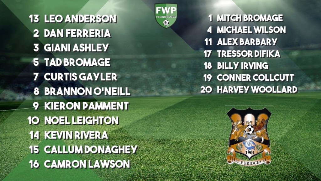 Opponents today, Three Bridges FC, play in the the Isthmian League South East, and have made a positive, if mixed, start to their season, winning against VCD Athletic and Lancing at home, but being beaten by Whitehawk and Sevenoaks Town in their away fixtures.