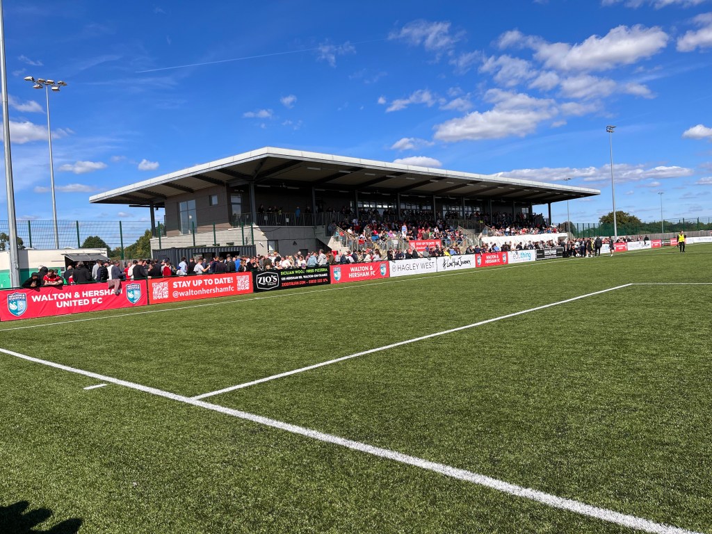 Walton & Hersham FC play at the Elmbridge Excel Sports Hub, a £20 million complex which was opened in 2017, after the club moved from their previous Stompond Lane ground. The stadium has an impressive grandstand and high quality facilities. There was a huge crowd in for the game today, of 1020, for this televised FA Cup-tie, between two attack minded and ambitious clubs.