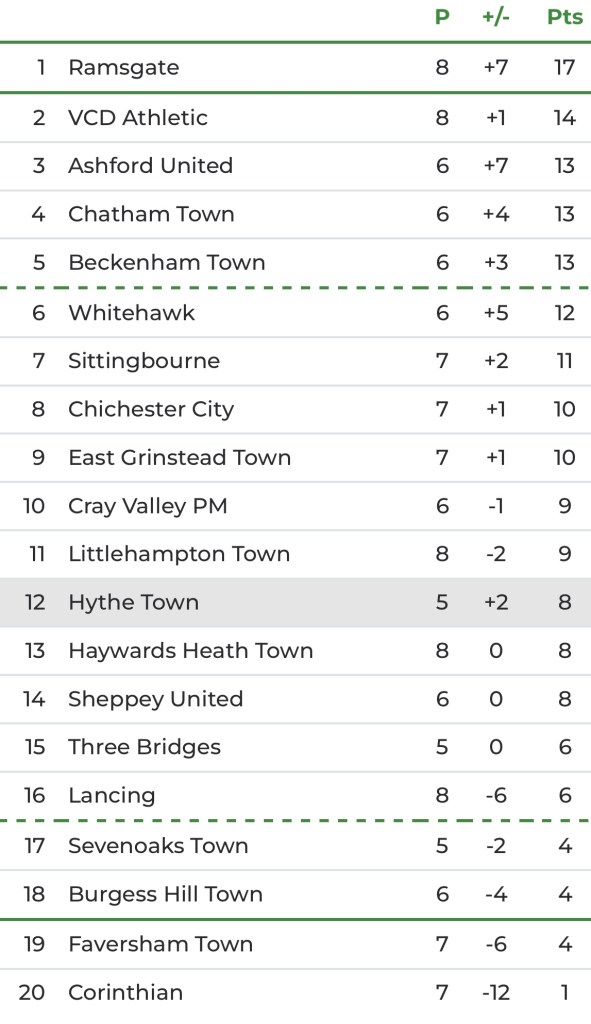 Both teams ply their trade in the Isthmian League (South East Division). Hythe Town, managed by Steve Watt, sit currently in 12th place, with eight points from five games.