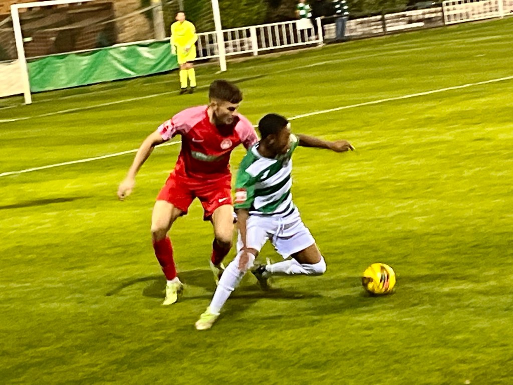 In the 29th minute, Corinthian were awarded a penalty after a foul in the Hythe Town penalty area. Oscar Housego stepped up confidently, to fire the ball home and put the home team 1-0 ahead.