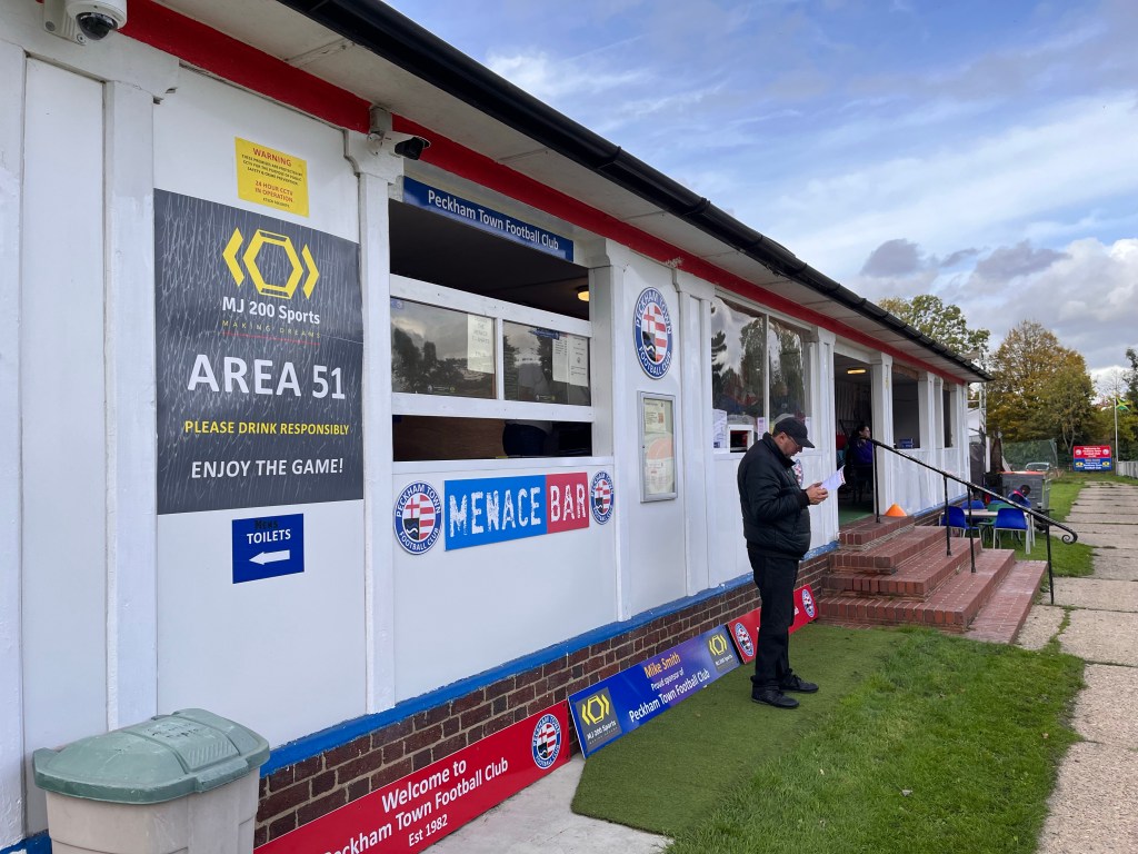 The Menace Arena is home to Peckham Town who were founded by 13 year old George Hall in 1988, before growing to sit in their own ground with tea bars, sponsorship from Peckham’s own Brick brewery, four covered stands, including what is believed to be the smallest covered stand in football, as well as having a loud and loyal set of fans. The welcome on arrival, is warm, with club members keen to show the facilities and talk about the team.