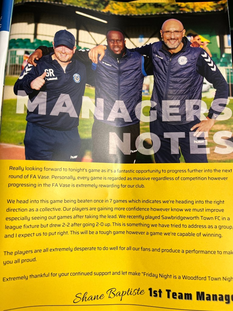 Woodford Town have had a positive opening quarter of the season, sitting in eighth place with fifteen points from ten games. Alejandro Machado with four goals and Samir Ali, with three goals have topped the scoring for the home side, this season. Manager Shane Baptiste would have been hopeful that his Woodford Town side can achieve promotion this season and a decent FA Vase run would add to the income and feel-good factor at the club.