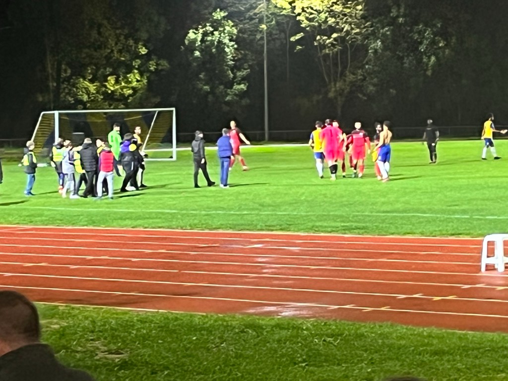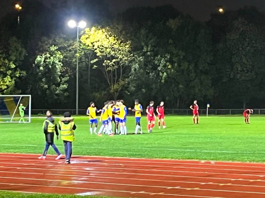 The game opened with Woodford Town attacking confidently, despite the wet surface, after heavy early evening rain. In the twelfth minute the ball fell to Woodford Town’s Luke Parrot who fired the ball home to put the Woods 1-0 ahead.