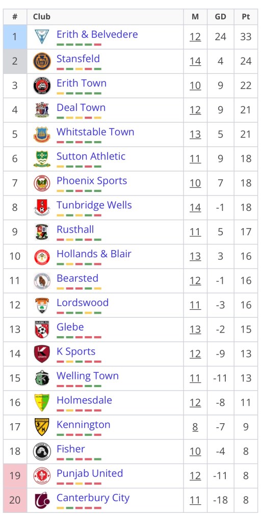 The SCEFL Premier Division table, coming into the game, for the current season, showed Holmesdale in 16th place, with eleven points from twelve games. Rusthall sat more comfortably in 9th place with seventeen points from their eleven games.