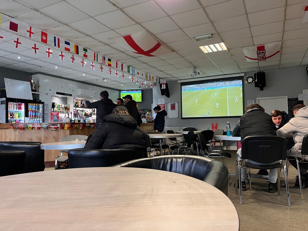 I took advantage of an early kick off today to go to see a Craske & Wells Memorial Trophy tie between Westerham FC and Tunbridge Wells Foresters FC. The weather was grey and cold as I approached King George’s Playing Field, home of Westerham. The ground has a sloping grass pitch and a nice clubhouse with decent bar and toilet facilities.