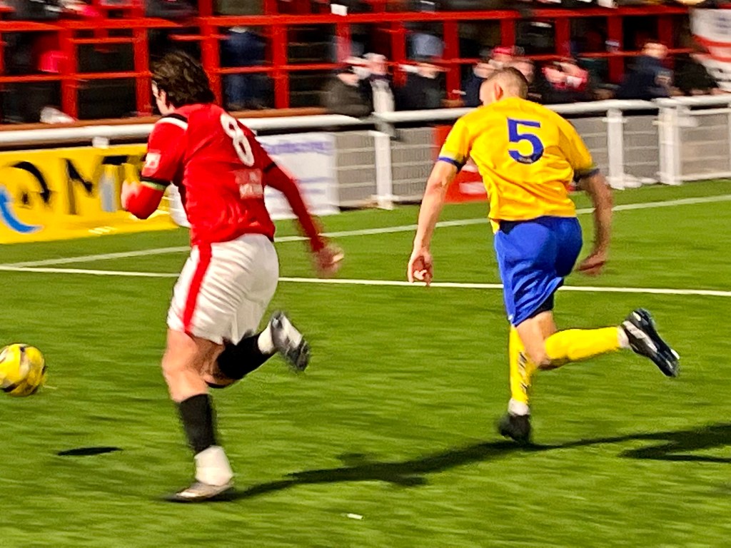 The game started with Chatham Town pressure leading immediately to a goal, when Fabio Saraiva shot into the keepers’ far left corner, to make it 1-0 to the home side, in the fourth minute.
