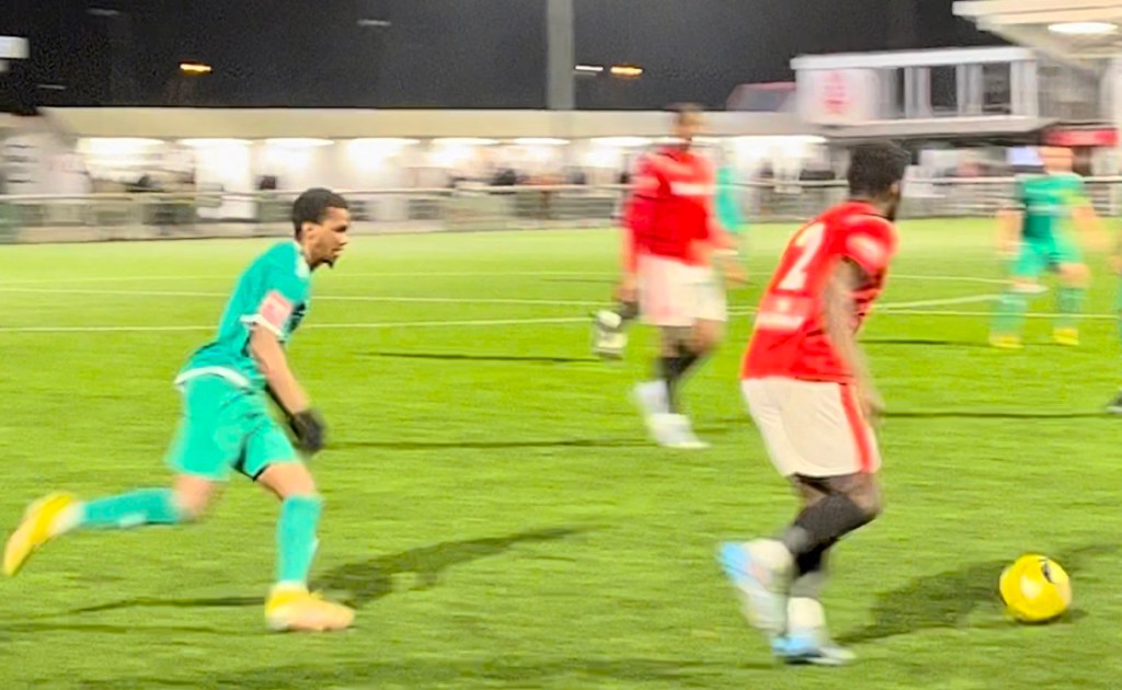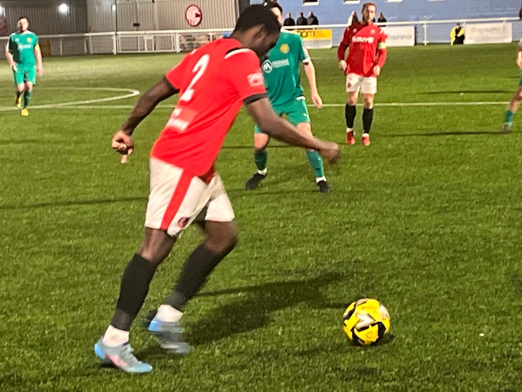 The match started with both sides shaping to attack, whenever the opportunities arose. Hudson’s well organised Sevenoaks Town side pressed largely down the left side through Bohui, Parker and Wilson. Chatham Town’s Robins and Evans were continually feeding Oloyede and Saraiva as they attempted to secure an opening for the home side.