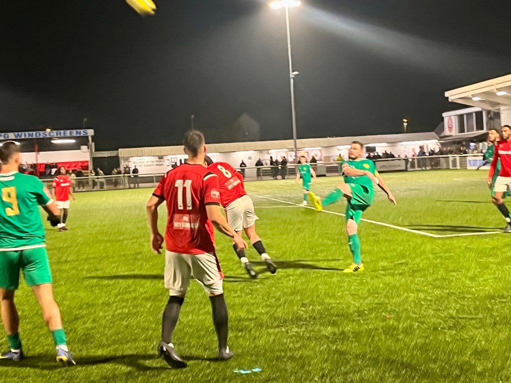 In the 39th minute, a well rehearsed routine from a corner, led to Chatham Town’s opening goal, when Centre half Butler headed home at the far post.