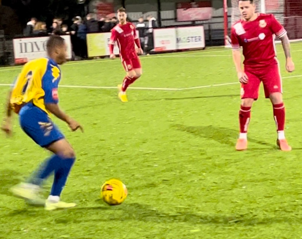 In the 74th minute, the inevitable happened when Faversham Town took the lead, 2-3, with a well finished effort by Michael Adeyemi, completing a remarkable comeback.
