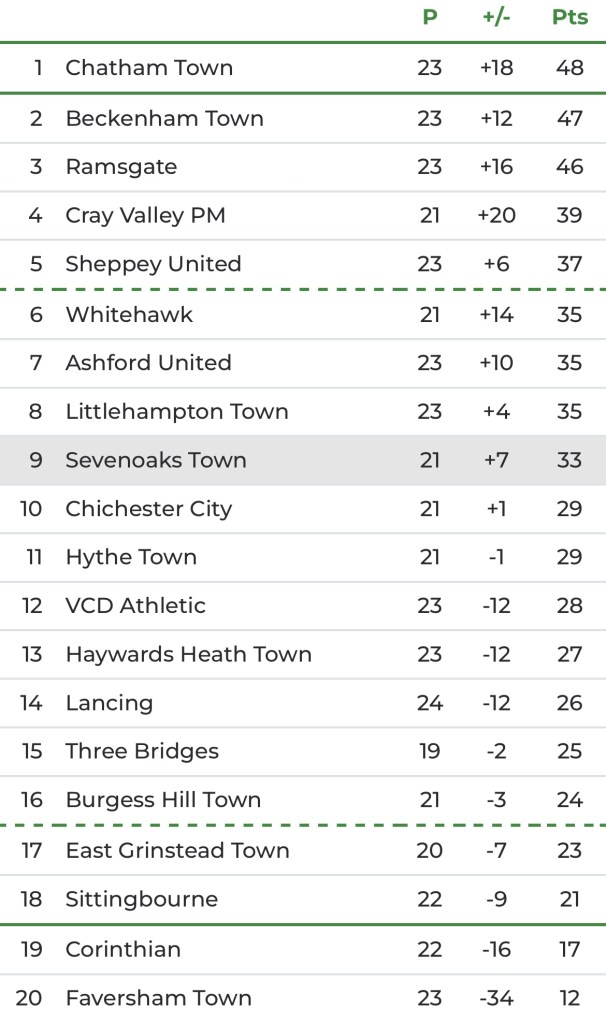 Isthmian League South East Division table at full time – Courtesy of http://www.footballwebpages.co.uk