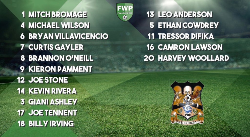In the 68th minute, Three Bridges drew level, when Curtis Gayler struck a free kick for his second wonder goal of the match, to tie the scores at 2-2.