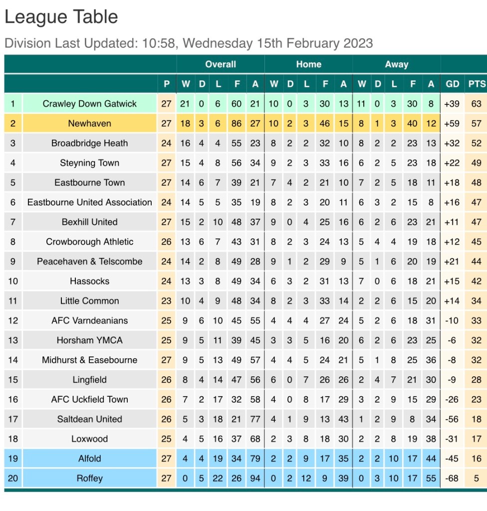 Steyning Town, who average over two goals a game, have been led in the goal scoring stakes by Jack Langford with fifteen goals in seventeen games and Dominic Johnson-Fisher (10 goals in 24 games). Steyning Town are managed by Kevin Green who was appointed in the summer of 2022, after the successful six year tenure of Gerry Murphy came to an end with his resignation. Green will be delighted with the progress made by his side, who only finished seventeenth in the Division last year, but will be keen to see them push on now to close the gap on Newhaven, in the last automatic promotion place.
