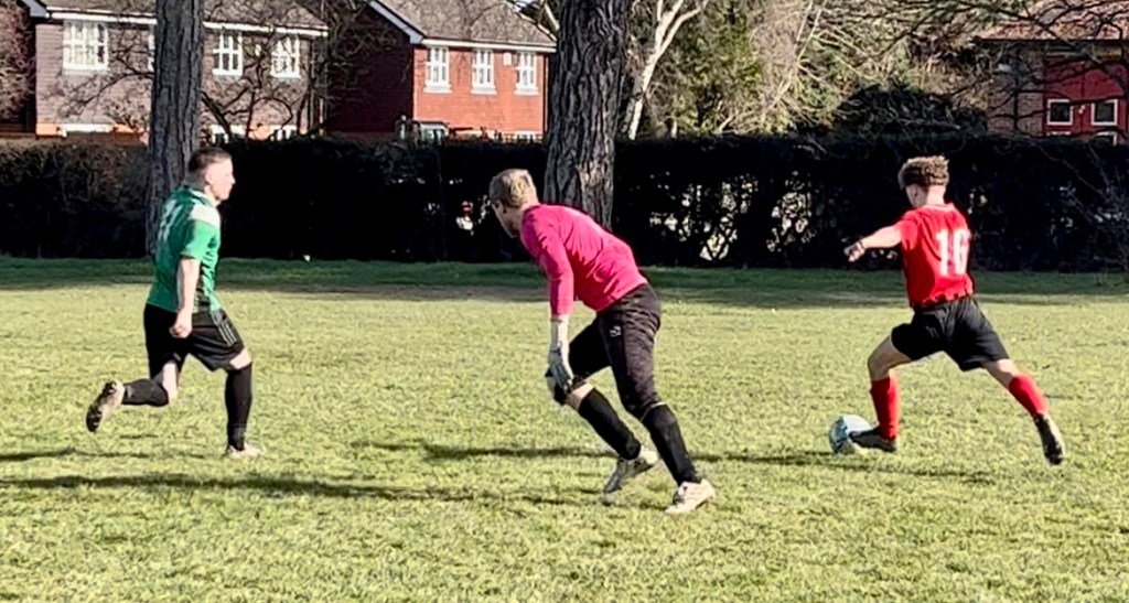 The sun was out bright and relatively warm, given how cold yesterday’s game by the sea had been. The game started well for Dormansland Rockets, with the away side looking sharp up front and going two ahead by the half hour mark.