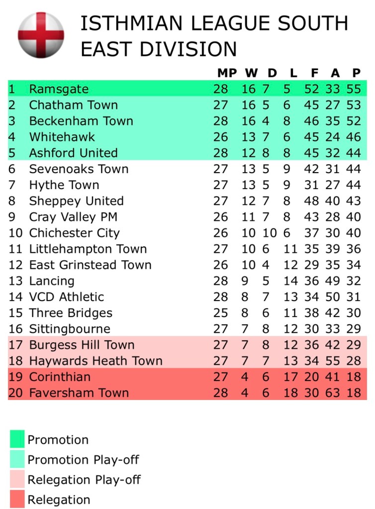 Coming into today’s match, Whitehawk sat in fourth place, just seven points behind Chatham Town and six behind Beckenham Town, who in second and third place, were still pushing leaders Ramsgate, for the automatic promotion place this season. Whitehawk’s goals this season have come from Joe Shelley (11 goals) and Rob O’Toole (7 goals).