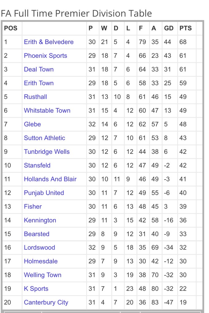 Bearsted have two games in hand on Welling Town, but already have three points more on the board, with thirty three points from twenty nine games. Bearsted’s goals have come largely from Oliver Freeman, who had ten to his name, coming into the fixture. Kevin Stevens is the manager at Bearsted and would have prepared his team for how crucial this fixture would be.