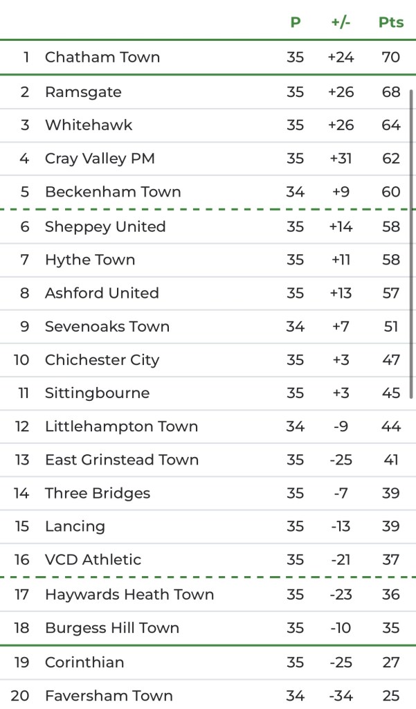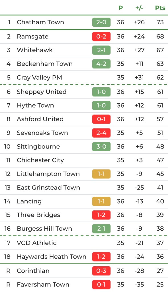 Chatham Town came into the match on the back of four straight wins and with goals coming freely, from Jack Evans (21), Dan Bradshaw (16) and Emmanuel Oloyede (13) throughout the season.