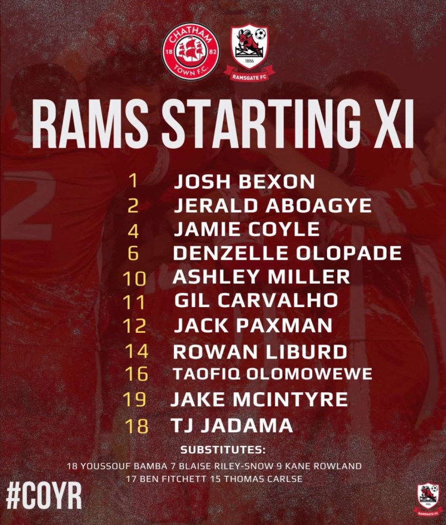 Ramsgate looked a real threat until Chatham Town’s manager, Kevin Hake, made an inspired changes with twenty minutes of play left, bringing on Emmanuel Oloyede. It immediately inspired a series of attacking opportunities and exposed vulnerabilities at the back for Ramsgate,