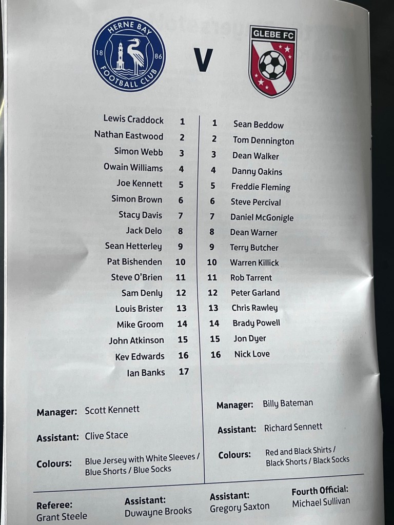 The Gallagher Stadium makes a fine venue and surprisingly this was my first visit of the 2022-23 season. Both teams have backing from successful Kent clubs, Glebe FC riding high in the Southern Counties East Football League Premier Division and Herne Bay FC having just been relegated from the Isthmian Premier League.