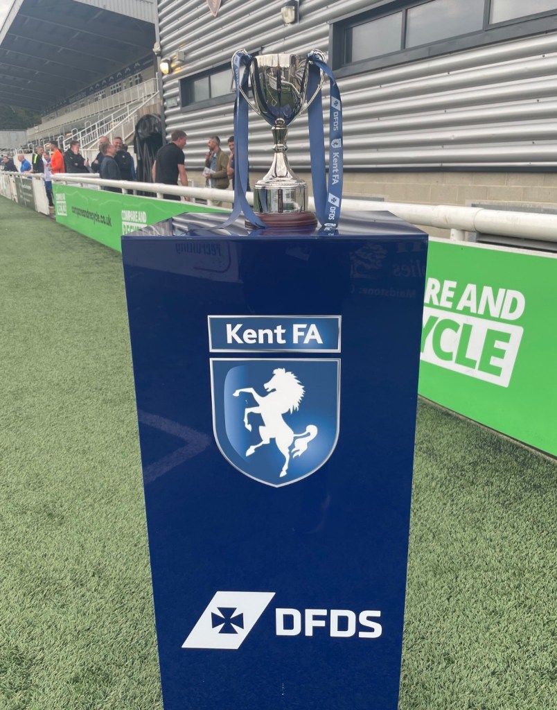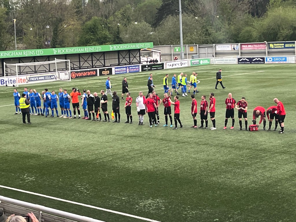 The first warm and dry day in a while brought me after work to Maidstone United’s Gallagher Stadium, for the Kent FA, DFDS Kent Veterans Cup Final.