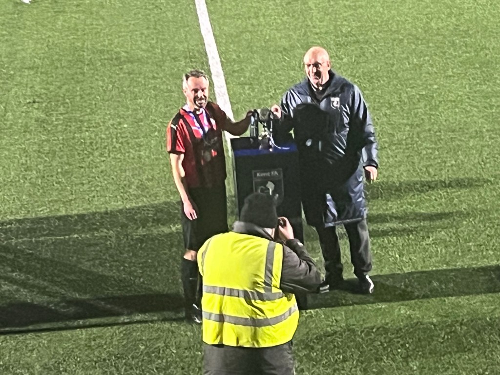 The DFDS Man of the Match award went deservedly to Glebe’s Warren Killick. A decent crowd stayed to see the sides receive their medals before Glebe Veterans lift the DFDS Kent Veterans Cup to loud applause.