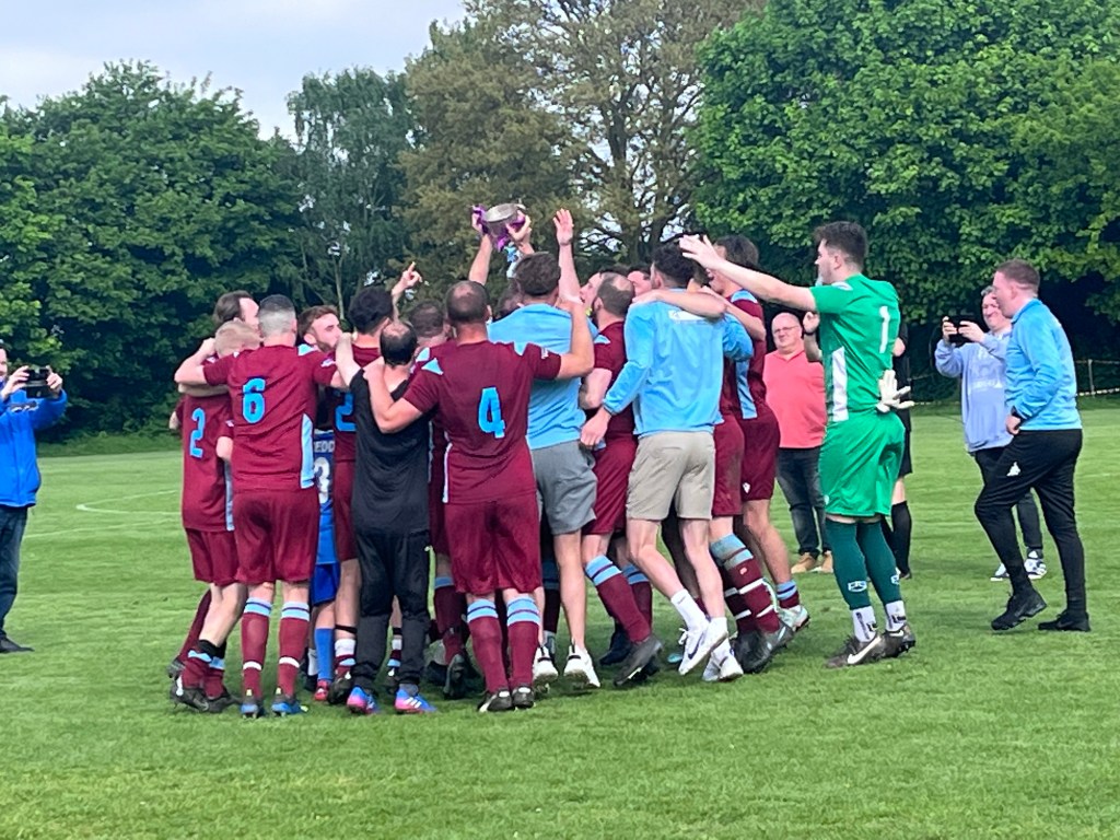 Minutes later the referee blew for full time, with the scores still tied 0-0 and Borden Village FC players were immediately able to celebrate wildly, before assembling to lift a richly deserved Kent County Football League Premier Division title.