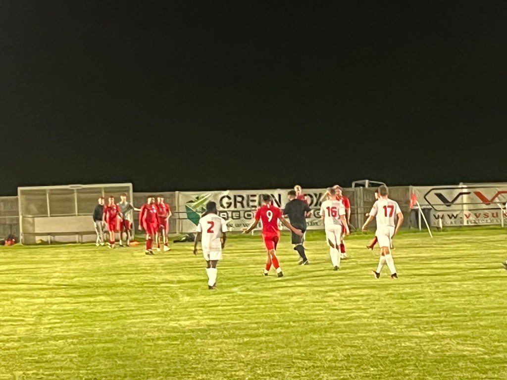 In the last minute of additional time Ramsgate FC were level. A neat cross from the left was headed home by Wes Hennessy. Staplehurst Monarchs were unhappy about the referee’s decision to allow for additional time and protests led to two red cards being issued to home side players.