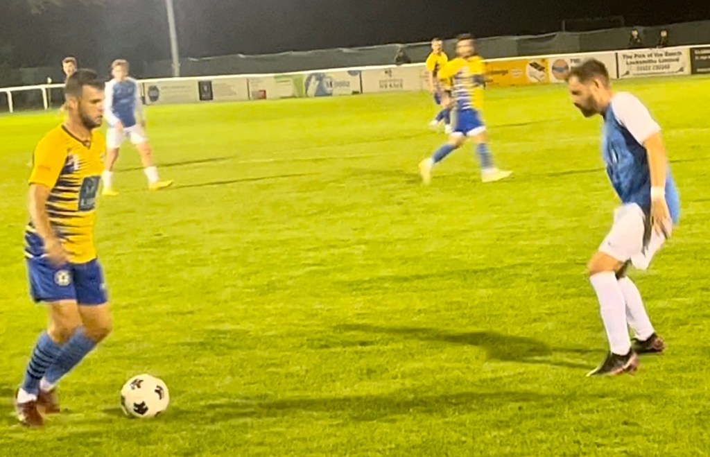 With 4 minutes to play Nathaniel Olawole broke free and slotted home Snodland Town’s fourth goal before launching one of the more unique celebrations of the night!