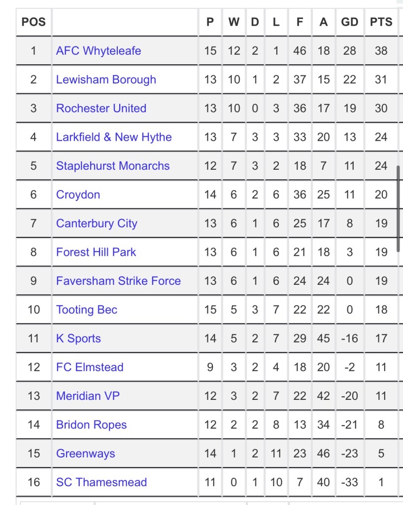 Having travelled quite a bit to watch games in recent weeks, I decided to return to the local excitement of the Southern Counties East Football League for today’s game. I came to Cobdown Stadium, home of Division 1 side K Sports, to watch them in their fixture with Meridian VP.