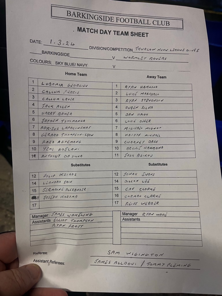 As the whistle went the away side began celebrations that were long and loud. The other teams in the league would certainly have taken notice of this scoreline. Barkingside fell apart on a wet evening and a tricky surface and will know they owe it to themselves and the fans to do better.