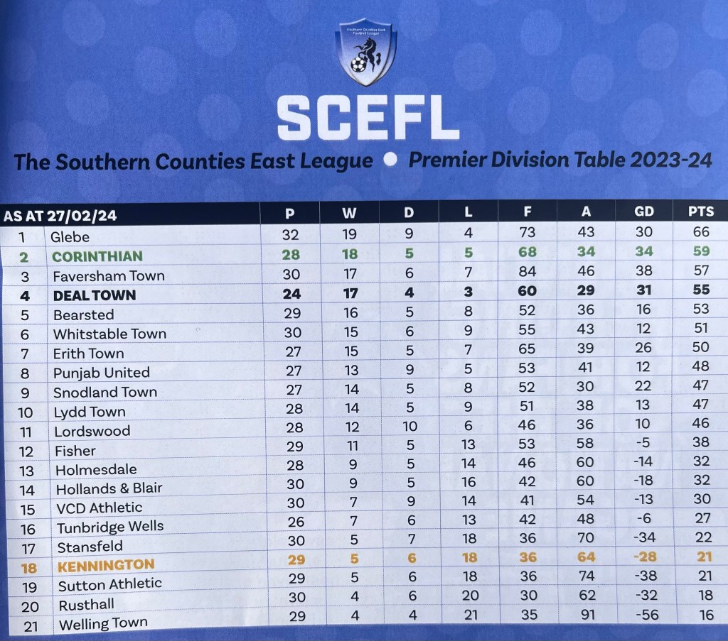 At full time it was Corinthian who clawed back the gap between themselves and leaders Glebe FC. Kennington FC didn’t stop battling throughout and this was in no way an east match for a strong Corinthian FC team, but Kennington FC need to find a way to threaten in attack, more convincingly. Michael Golding’s team look to be on a mission and I wouldn’t bet against a return to the Isthmian League at the first attempt this season, come the start of May.
