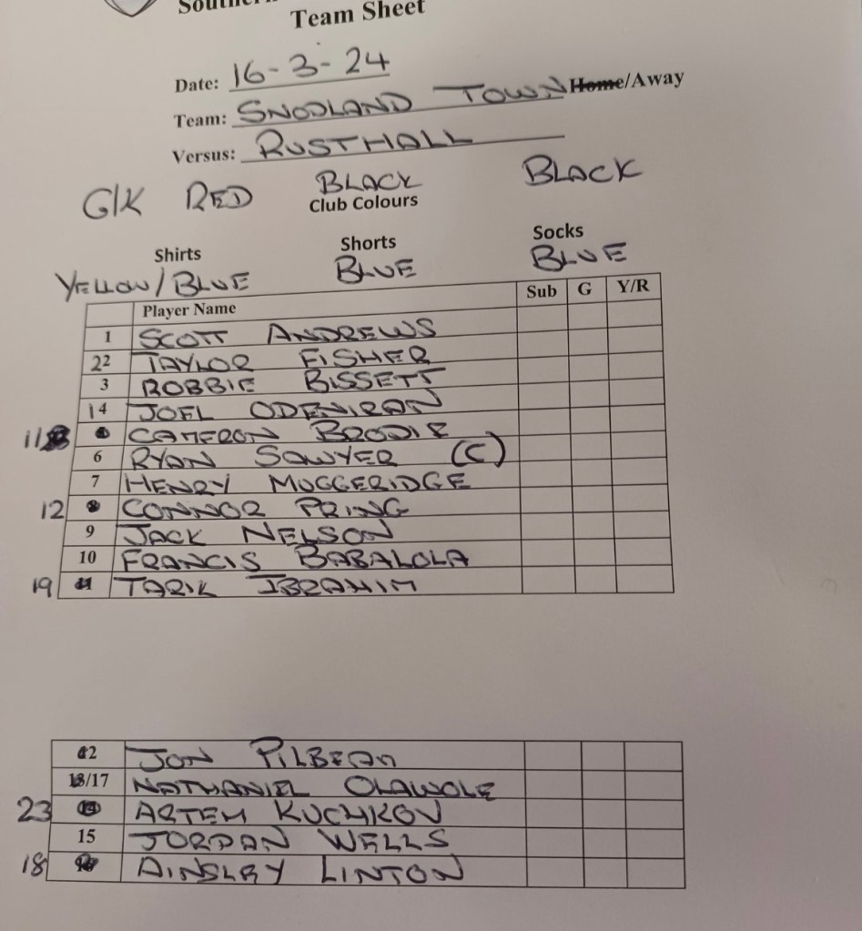 As the half progressed Rusthall created chances of their own. Snodland Town switched their focus to ensuring the game was closed out. Luke Wallond’s introduction of Nathaniel Olawole late in the game injected some pace and ensured Snodland finished the game positively. At full time it was Snodland who left the Jockey Farm ground with three points, leaving Rusthall deep in a relegation battle as the season moved into the final quarter.
